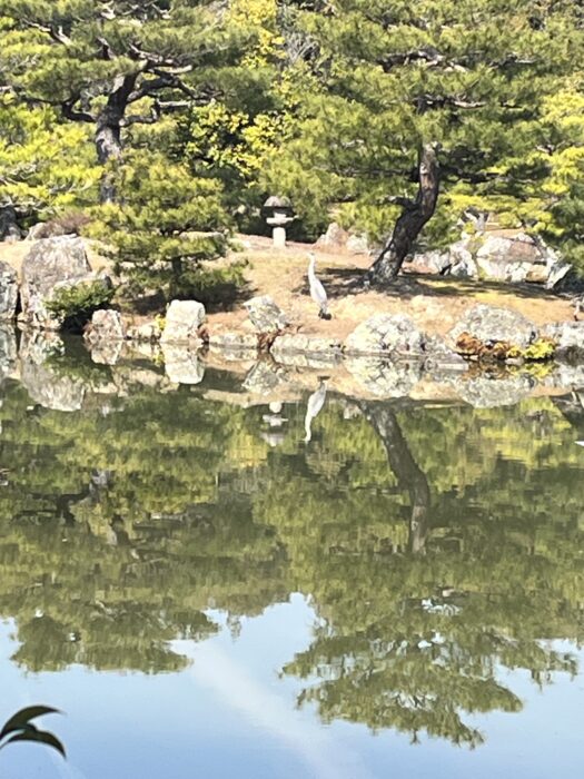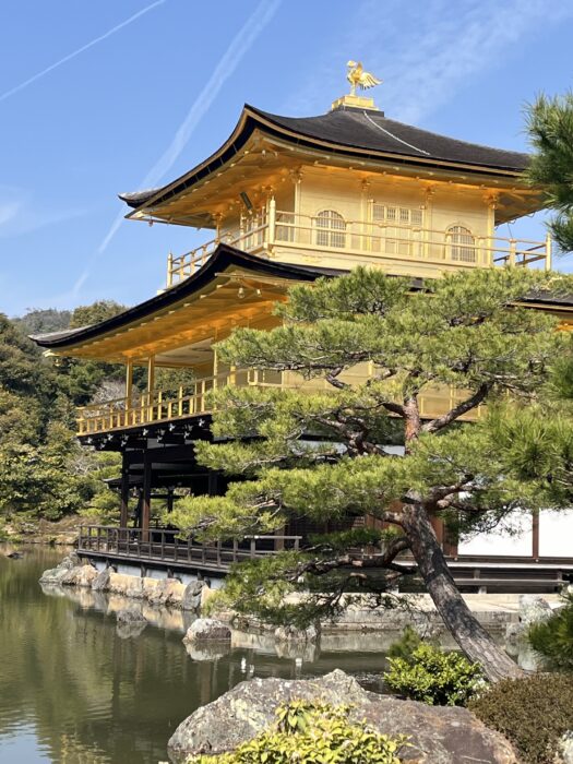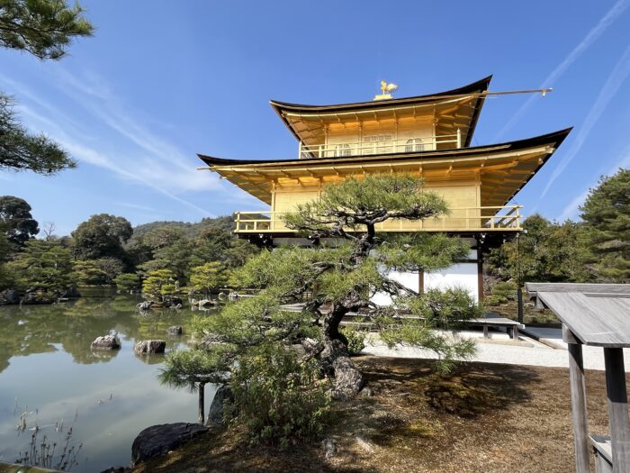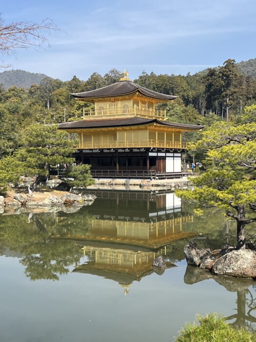 Originally a retirement villa for a shogun (military leader in Japan’s feudal ages), it was converted in top a Buddhist temple after his death. After the shogun’s death, his villa blossomed into a Buddhist temple. I really like the idea that quiet rituals of a pacifist faith replaced the history of military might. So it felt nice to be there. The reflecting pond was fantastic, and the blue sky glowed as the sun came out. The gold you see covers the entirety of the top 2 floors and is real gold leaf!