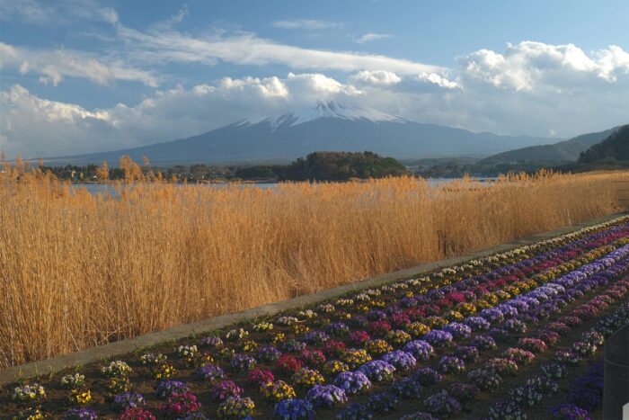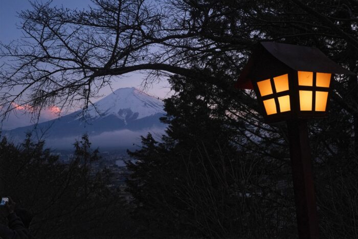 Oishi Park, on Lake Kawaguchi was a favorite for the foreground scenery. The light was low, catching all the colors nicely… but the mountain was shy and while we have a whole hour to wait, impatiently for it to show itself, it mostly refused. The lake was beautiful, and the souvenir shop was amazing, including ice cream in flavors like cherry blossom & matcha, Shine Muscat & Kyuhou grape. Mostly it had tons options for us to buy “Fujisan shaped things,” as the guide called them.